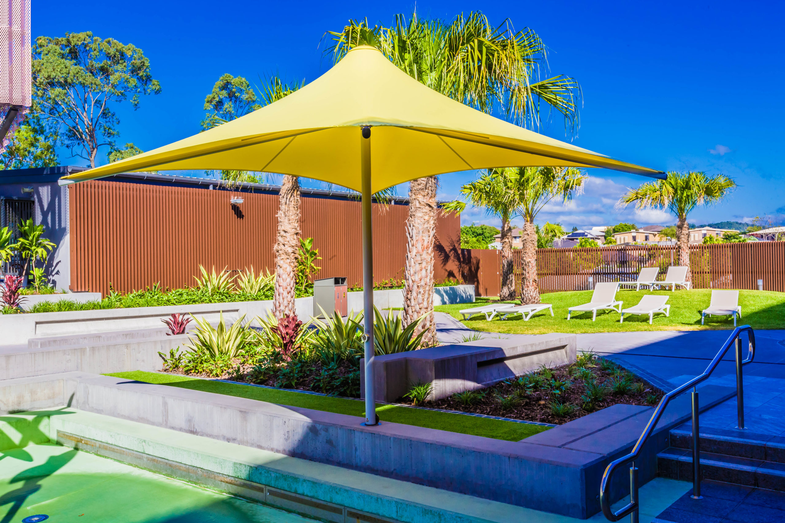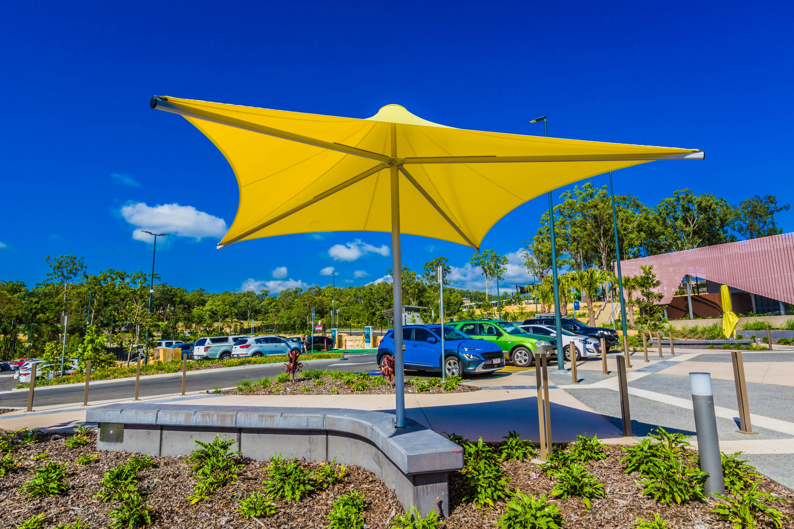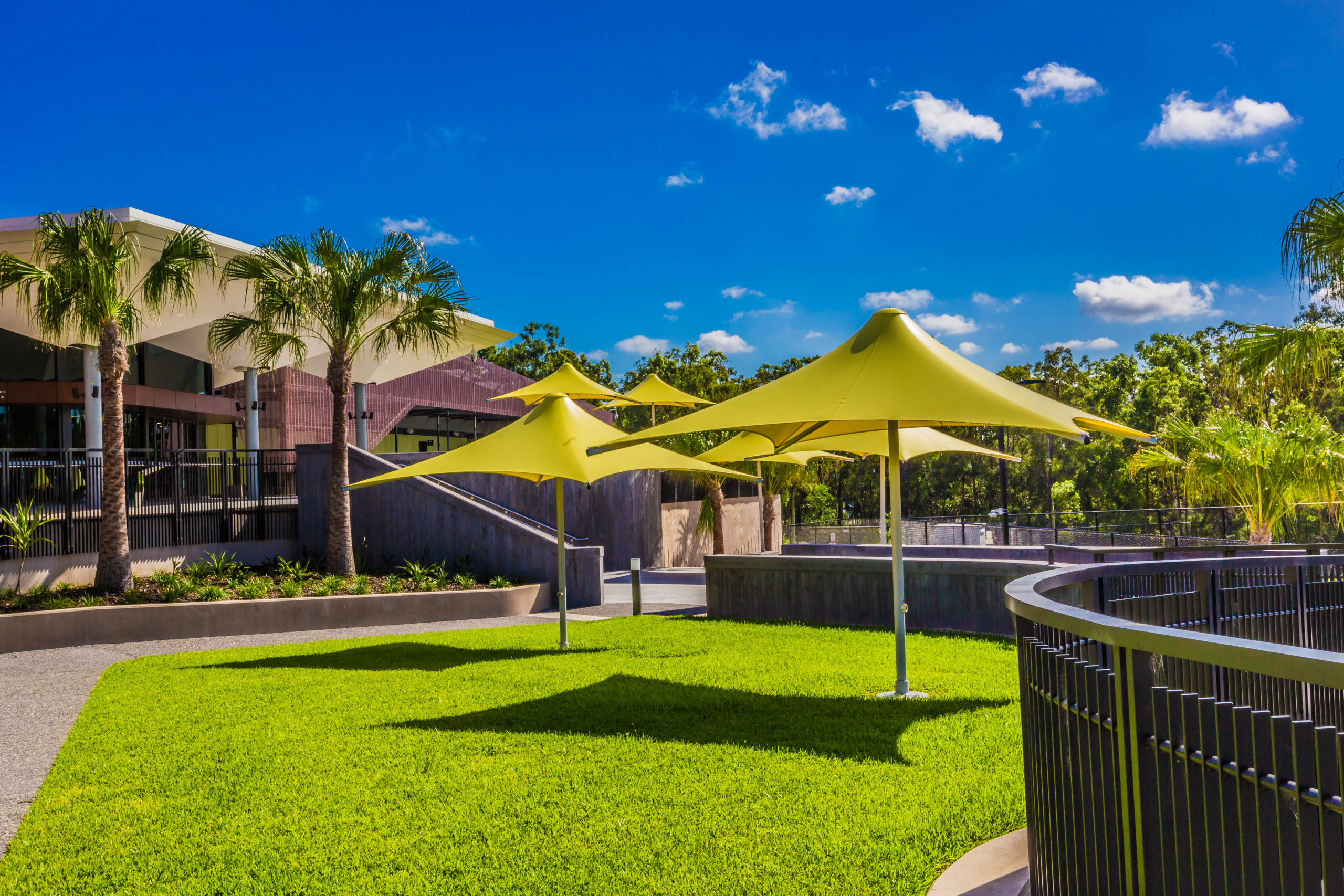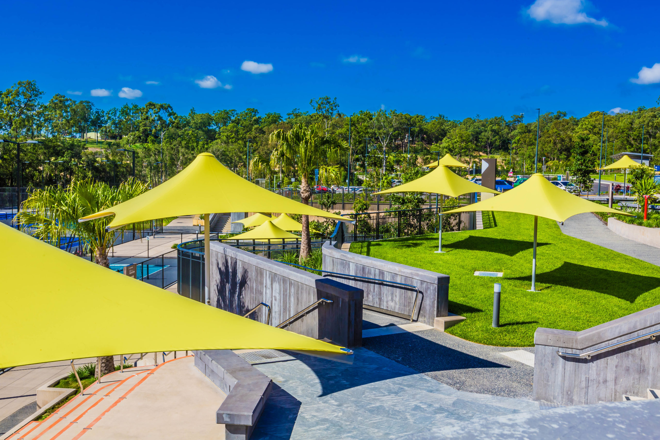 Skyspan Shade was chosen by Adco / Naturelink Landscapes to provide an umbrella shade solution for the head client, Pimpama Sports Hub in Queensland. The Aquatic Centre at Pimpama Sports Hub hosts regional events, training and school groups, learn to swim and aquatic programs, recreational users and the wider community.