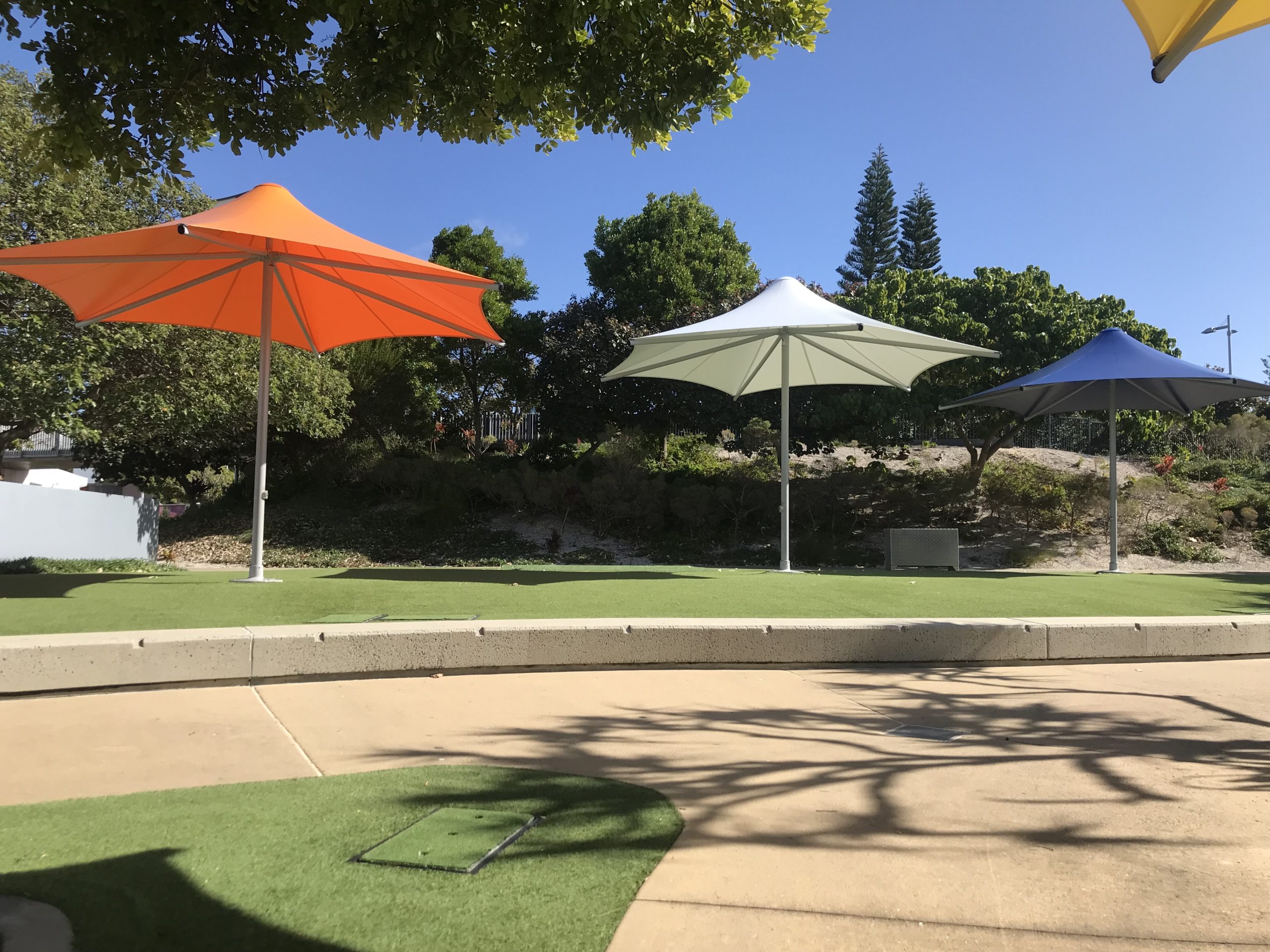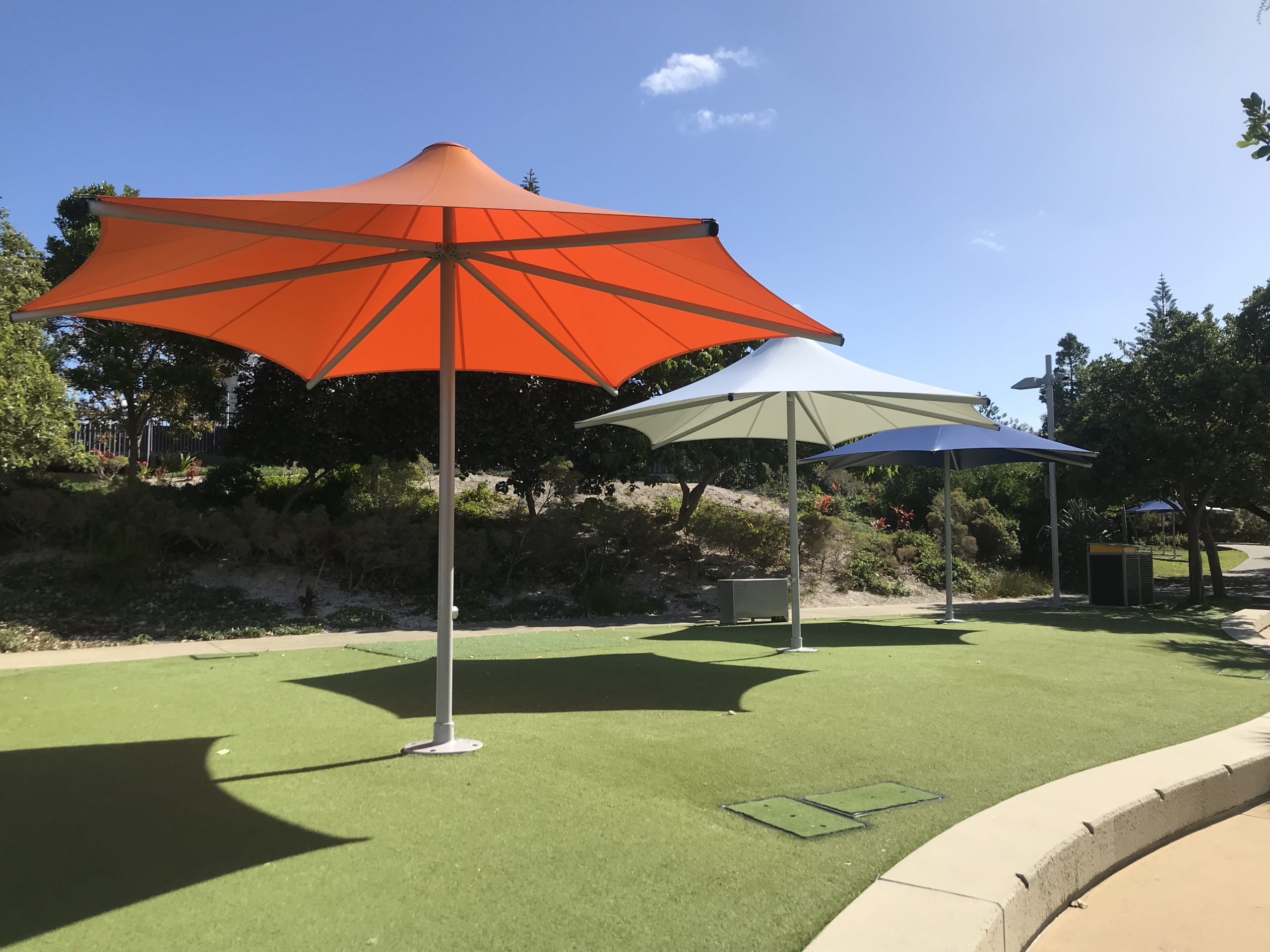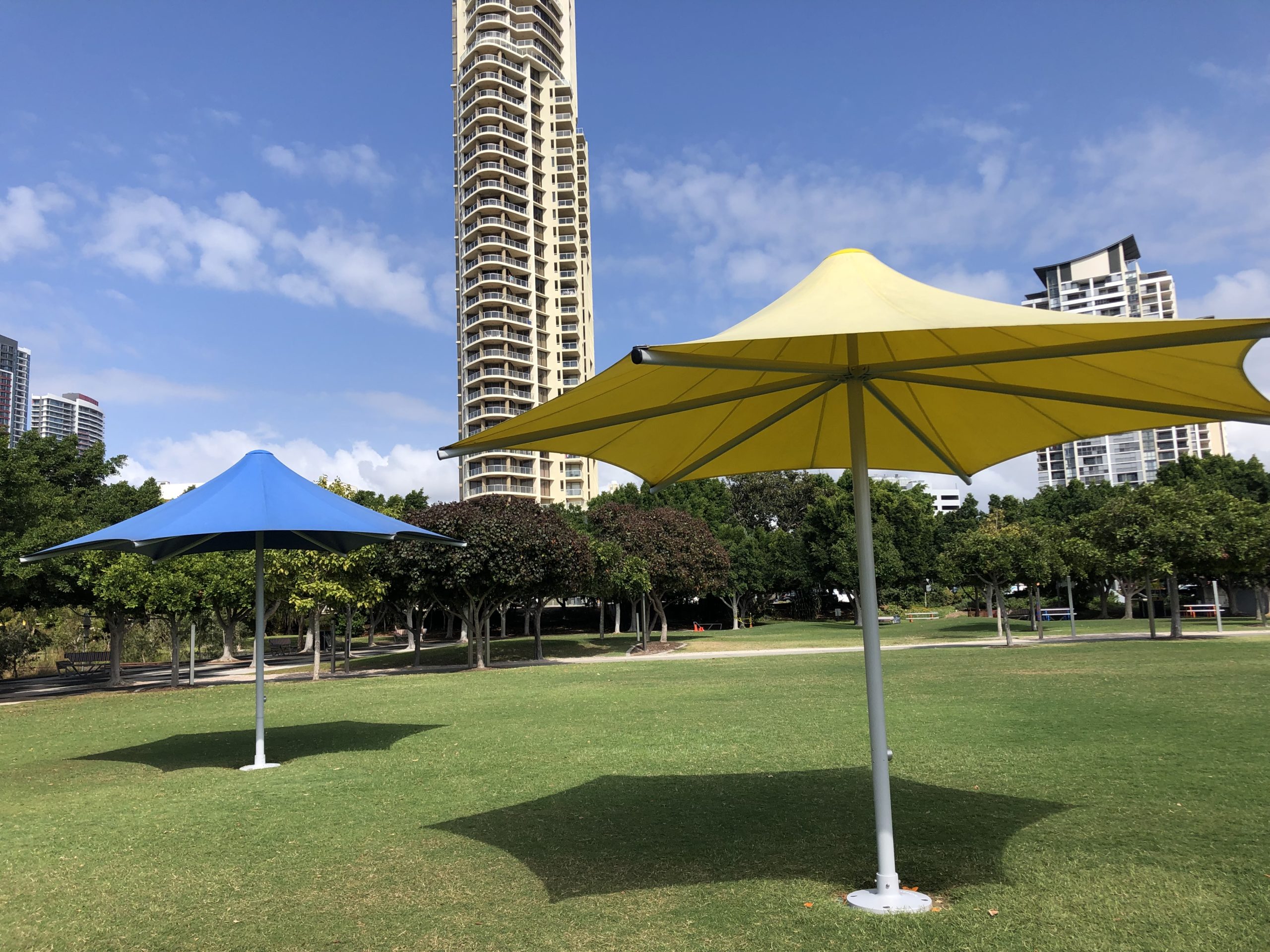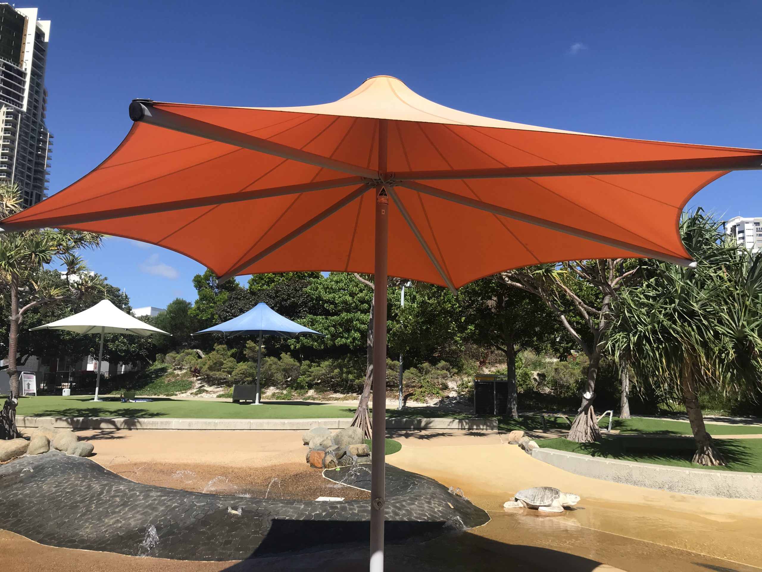 Skyspan Shade refreshed the existing Sunset hexagonal umbrellas in the park, with twelve new canopies, in June 2022.